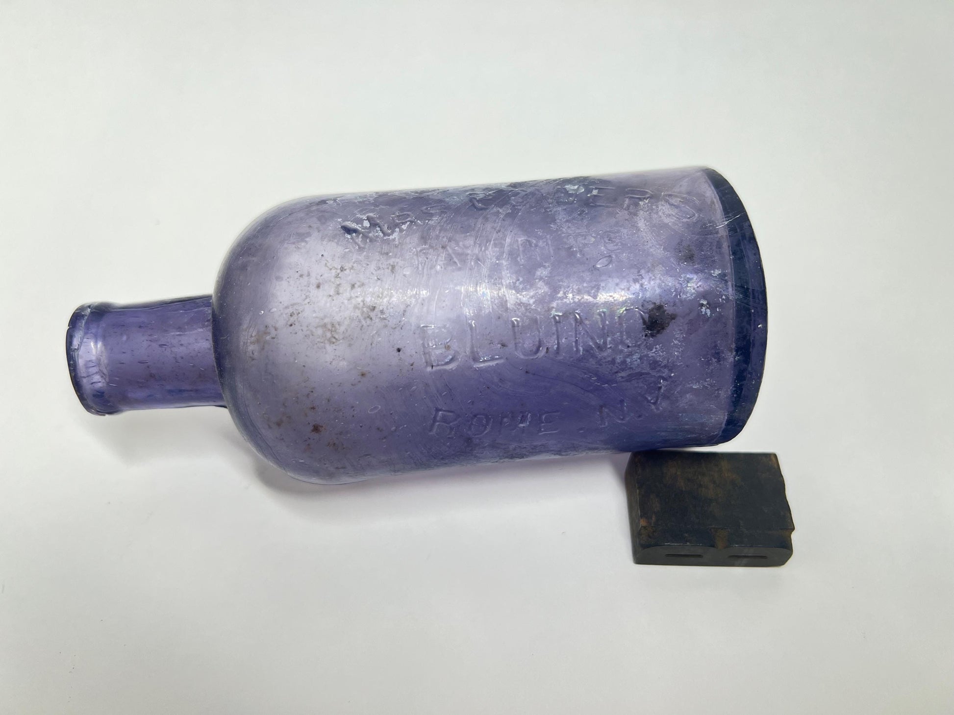 Antique Amethyst Glass Pharmacy Bottle: Blum Rome NY Embossed